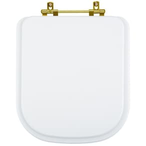 Tampa de Vaso Sanitário Poliéster Quadra Branco para bacia Deca Com Ferragem Dourada é a escolha perfeita para seu banheiro trazendo beleza e praticidade. Esta Tampa de Vaso é maciça em Resina de Poliéster, muito resistente e totalmente à prova de água. Com acabamento brilhante de alto padrão e ferragem dourada muito resistente que não oxida. Este Assento Sanitário é compatível em vaso sanitário com ou sem caixa acoplada.