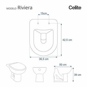 Tampa de Vaso Poliéster Riviera Pergamon (Bege Claro) para Bacia Celite é a escolha perfeita para seu banheiro. Produzido em resina maciça de poliester, é totalmente impermeável, muito resistente. Apresenta excelente durabilidade. Com acabamento de alto padrão, é considerado o melhor material para assentos do mercado. Proporciona mais higiene e conforto. Fica firme no vaso sanitário. Possui ferragem de alumínio anodizado não oxida e não enferruja. Muito resistente. Não escorrega. Produto completo, acompanha os parafusos para fixação. Instalação rápida e fácil, basta uma chave de fenda e fica pronto em menos de um minuto. Compatível para uso em vaso sanitário Celite modelo Riviera com ou sem caixa acoplada. Dicas: Instalação: Sem desmontar o produto, posicione sobre o vaso sanitário e encaixe os dois parafusos com as borrachas pretas dentro do furo do vaso. Aperte com a chave de fenda no sentido horário até ficar firme. Limpeza: Recomendamos a limpeza com água e sabão neutro, não utilizar produtos abrasivos ou químicos.
