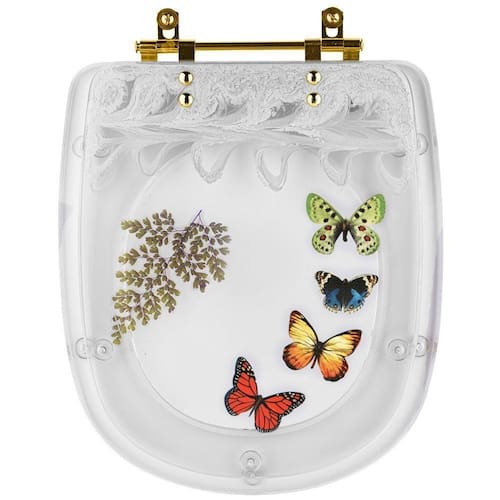 Tampa De Vaso Poliester Sabatini Decorado Borboletas Com Ferragem Dourada Tampa de Vaso Sanitário Poliéster Sabatini Branco Assento Cristal Decorado 4 Borboletas para bacia Icasa Com Ferragem Dourada. Conforto, qualidade e elegância para o seu banheiro. Esta Tampa de Vaso é maciça em Resina de Poliéster, muito resistente e totalmente à prova de água. Com acabamento brilhante de alto padrão e ferragem dourada muito resistente que não oxida. É compatível para uso em louça sanitária com ou sem caixa acoplada.