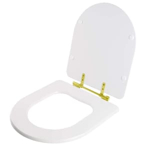 Tampa De Vaso Poliéster Smart Branco Para Bacia Celite Com Ferragem Dourada