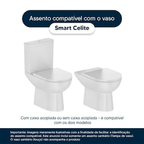 Instalação Simples e Rápida: Com todos os parafusos e componentes necessários inclusos, a instalação é rápida e descomplicada. Seu novo assento estará pronto para uso em questão de minutos. Desenvolvido especificamente para o modelo Smart da marca Celite, com ou sem caixa acoplada, proporciona um encaixe perfeito, oferecendo estabilidade e conforto durante o uso.