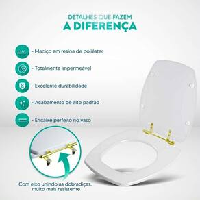 Durabilidade e Resistência: Fabricado em resina maciça de poliéster, este assento sanitário é altamente resistente e totalmente impermeável.