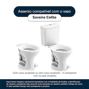 Compatível com o modelo Saveiro da marca Celite, este assento se encaixa perfeitamente no vaso sanitário.