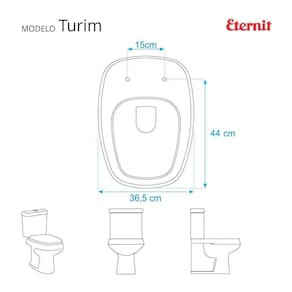 Compatível com o modelo Turim da marca Eternit, este assento se encaixa perfeitamente no vaso sanitário.