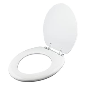 Este Assento Sanitário é produzido com base em MDF, camada de espuma macia e revestimento em vinil plástico brilhante. É muito macio e confortável. A ferragem é metálica em alumínio anodizado e não enferruja.