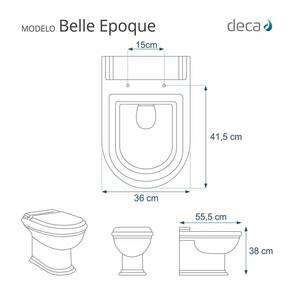 Detalhes e Cuidados Especiais: * Cor: Branco * Compatibilidade: Modelo Belle Epoque da marca Deca * Conteúdo da Embalagem: Assento sanitário, parafusos de fixação e instruções de instalação. * Fabricante do Assento Sanitário: Pontto Lavabo.