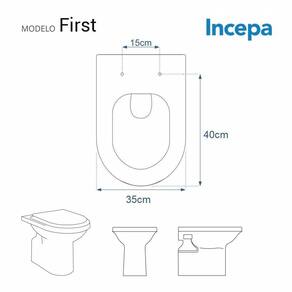 Este assento sanitário é compatível para uso em vaso sanitário Incepa modelo First com ou sem caixa acoplada.