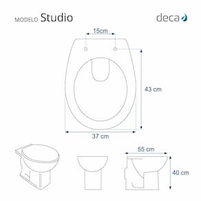 Este assento sanitário é compatível para uso em vaso sanitário Deca modelo Studio com ou sem caixa acoplada.