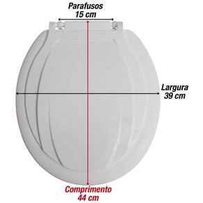 Diferença no nosso produto:Design exclusivo: Desenho da tampa exclusivo Além de beleza, gera mais resistência e segurança, pois os vincos proporcionam um maior reforço mecânico na tampaA tampa e o assento não caem, mesmo com louças que possuem caixa acoplada.Mais conforto e higiene para o seu dia a dia Superfície lisa evita o acúmulo de germes e sujeiras.Mais resistente: Reforço na base evita que o assento dobre ou rache.Parafusos de fixação ajustáveis e reforçados, acompanhados de porcas cônicas, que garantem um melhor ajuste para seu vaso. Não é necessário o uso de ferramentas para instalação do assento.OBS.: O assento NÃO é almofadado Possui tampa plástica injetada, garantindo alta durabilidade por um preço acessível.Produzido em Polipropileno. Matéria prima virgem que garantem mais durabilidade.Disponível em diversas cores.Compatível com TODAS louças sanitárias ovais convencionais do mercado.Distância entre parafusos: mínima: 15 cm / máxima: 16,5 cmMedidas LxCxA : 39x44x3CONTÉM: 1 Assento Sanitário Oval com Tampa1 kit Fixação