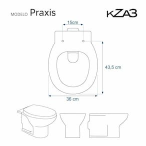 Este assento sanitário é compatível para uso em vaso sanitário KZA3 modelo Praxis com ou sem caixa acoplada.
