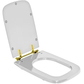 Itens inclusos: assento sanitário em madeira MDF com pintura laqueada com ferragem dourada em alumínio anodizado.