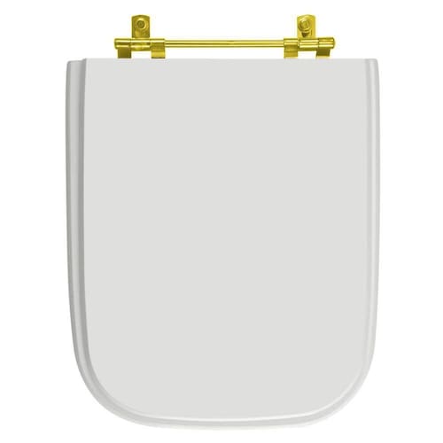 Itens inclusos: assento sanitário em madeira MDF com pintura laqueada com ferragem dourada em alumínio anodizado.