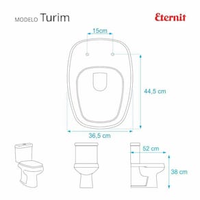 Detalhes e Cuidados Especiais: * Cor: Branco * Compatibilidade: Modelo Turim da marca Eternit * Conteúdo da Embalagem: Assento sanitário, parafusos de fixação e instruções de instalação. * Fabricante do Assento Sanitário: Pontto Lavabo.
