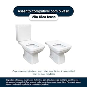Instalação Simples e Rápida: Com todos os parafusos e componentes necessários inclusos, a instalação é rápida e descomplicada. Seu assento estará pronto para uso em questão de minutos. Desenvolvido especificamente para o modelo Vila Rica da marca Icasa, com ou sem caixa acoplada, proporciona um encaixe perfeito, oferecendo estabilidade e conforto durante o uso.