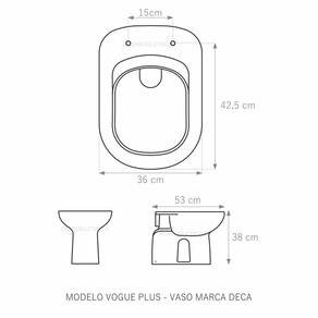 Tampa De Vaso Vogue Plus Mogno Tampa Para Vaso Deca De Mdf Mogno Assento Sanitário tampa de vaso fabricado em madeira MDF com pintura laqueada, com proteção raios UV, que garante excelente acabamento e durabilidade. Compatível com vasos bacias/louças sanitários com ou sem caixa acoplada. Tem calços de PVC instalados na tampa e no assento para proporcionar estabilidade ao uso, pois distribui o peso uniformemente sobre a louça sanitária. Montagem simples e fácil. Possui ferragem em alumínio anodizado que não enferruja/oxida e oferece muita resistência. O assento é acompanhado por parafusos para instalação. Embalagem dupla reforçada garante o recebimento do produto totalmente protegido. Especificações: - Dimensões da caixa: largura: 49,50cm. Altura: 4,00cm comprimento: 39,50cm - Peso do produto: 1,98kg - Acabamento: brilhante - Uso: este assento é adequado para uso na louça Deca modelo Vogue Plus - Garantia: 3 meses - Itens inclusos: Tampa e assento em MDF com calços de PVC, ferragem inoxidável, embalagem duplamente reforçada. Contém todos os parafusos e encaixes para instalação, sendo necessária somente uma chave de fenda para instalar o produto na louça sanitária. Instalação: posicione o produto, devidamente centralizado, em cima do vaso sanitário. Sem desmontar a ferragem, insira as buchas de borracha dentro dos furos da bacia sanitária. Encaixe os parafusos e posicione as porcas. Utilizando uma chave de fenda, aperte o parafuso no sentido horário até que o assento esteja firme e fixo no vaso. Manutenção: recomendamos a limpeza periódica com pano levemente umedecido com sabão neutro. Não usar esponjas abrasivas ou palha de aço nem qualquer tipo de produto químico. Ean: 7891467005423