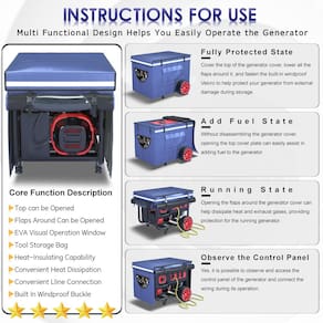 - {Recurso exclusivo de uso duplo}: A tampa externa do gerador GEHENG tem um recurso de uso duplo. Ao usar o gerador, enrole as abas ao redor dele e a tampa do gerador fornecerá proteção de segurança contra vento, chuva, neve e outros aspectos ao ar livre. Quando você não estiver usando o gerador, basta colocar as abas ao redor dele e a tampa do gerador fornecerá proteção abrangente de armazenamento à prova de poeira para o gerador.