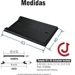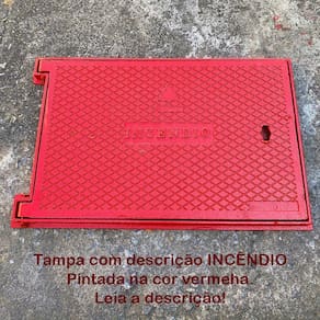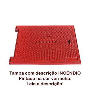 Tampa de incêndio registro hidrante recalque 40x60 ferro vermelha A tampa de padrão incêndio foi projetada para tampar a válvula de incêndio com descrição na tampa e também caixas de passagem de tubulação, esgoto, águas pluviais, água potável, redes de telecomunicações, eletricidade entre outros. Indicação: registro de recalque.Material: ferro fundido.Acabamento: pintura cor vermelhaAtenção: a tampa vai pintada na cor vermelha com tinta esmalte sintético, muito cuidado na instalação do produto para não danificar o acabamento na parte superior da tampa. Modelo: tampão articulado.Peso: 15,600kgPeso suportado: 500kg Venda garantida com nota fiscal AtençãoSuporta passagem apenas de veículos leves . Temos uma linha completa em tampas de ferro e pvc para construção como, tampões para proteger caixas de passagem, tampa de esgoto, tampa de águas pluviais, tampa de ferro fundido tampa de água potável, tampa para calçada, tampa de ferro elétrica, entre outros. Marca: Casa E Jardim Comércio