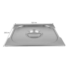 Tampa para Cuba Gastronômica Gn1/2 Rechaud Buffet - Divisão InoxEssa tampa é ideal para a utilização em cubas no padrão GN 1/2 usadas em rechauds, buffets self service, carrinhos térmicos, restaurantes, hotéis e refeitórios.Fabricada inteiramente em Aço Inoxidável, possui grande qualidade, durabilidade e resistência.Diminua a perda ou desperdício de alimentos em seu estabelecimento, otimizando processos, facilitando a higienização e consequentemente, melhorando o nível de segurança e qualidade dos alimentos obtendo uma maior rentabilidade!!CARACTERÍSTICAS TÉCNICAS:Material: Aço InoxFormato GN: 1/2Altura: 1 cmLargura: 26,5 cmProfundidade: 33 cmPeso: 0,350 KgMarca: Ke HomeGarantia: 90 diasINFORMAÇÕES IMPORTANTES:Conta com pegador soldado e um excelente acabamento.