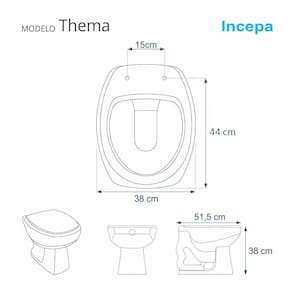 Compatível com o vaso sanitário Incepa modelo Thema com ou sem caixa acoplada (é compatível com os dois tipos de vasos).