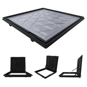 Tampa Piscina Casa de Máquina 75x75cm Articulada Rebaixada com Grelha Invisível cor Preta