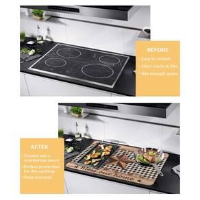 Tampa de fogão para fogão elétrico Características do produto: borracha natural e durável, antiderrapante e evita arranhões, resistente ao calor até 400° F/200° C, espessura de 4 mm expande o espaço útil. Impermeável e fácil de armazenar. Multifuncional. Pode ser usada como tampa de fogão, tampa de fogão de vidro, protetor de fogão de vidro, tampas de fogão completas para fogão elétrico, tapete de bancada, tapete de passar roupa, tampa de lavadora, parede backsplash, tapete de secagem de utensílios de mesa, tampa plana do forno, tampa superior do secador, tampa da geladeira capa, tapete para batedeira, tapete resistente ao calor, etc. Tamanho ideal 24x21 polegadas 28,5 x 20,5 polegadas 31x24 polegadas 36x21 polegadas Pacote 1x tampa de fogão 2x ganchos - Tampa de fogão de alta qualidade: esta tampa de fogão de vidro é feita de borracha natural de alta qualidade na parte inferior e tem uma camada de tecido técnico na parte superior, estampada com nossos padrões elegantes. É macio, impermeável, antiderrapante e evita arranhões - expande o espaço útil: ao preparar pratos, oferece espaço extra no balcão de 28,5 “x 20,5” e expande o espaço de armazenamento adicional para itens após a refeição. Protege perfeitamente a tampa de vidro, ao mesmo tempo que oferece mais possibilidades de atividades na cozinha - Tampas de fogão completas multiuso: esta almofada de fogão de indução não só pode ser usada no fogão elétrico, mas também pode ser usada como uma área de preparação de material na parte superior do fogão de indução ao preparar pratos ou como um lindo revestimento de parede. Pode ser utilizado como tapete de bancada para colocar alimentos quentes, tapete para secar louças, tapete de passar roupa temporário e tampa superior da lavadora. - Resistente ao calor: a almofada de isolamento elétrico do fogão pode suportar temperaturas de até 400 ? /200° C, ela pode ser usada após a luz da “superfície quente” se apagar por 5 minutos, mas a parte superior ainda está muito quente, preste atenção para não entrar em contato com a chama aberta - Fácil de cuidar: nossa tampa protetora de fogão elétrico é fácil de limpar, basta limpá-la com um pano úmido ou lavar na máquina. Ele vem com 2 ganchos para pendurar, flexíveis e fáceis de dobrar para armazenamento
