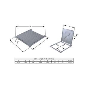 01 Tampa Tampão Chão de Alumínio Quadrado Articulado 25x25cm.