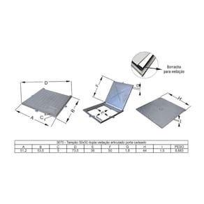 Possui duas tampas sendo a tampa inferior responsável pela vedação juntamente com uma borracha entre o aro proporcionando uma vedação perfeita com ajuda de quatro parafusos sextavados cabeça chata, contra mau cheiro e a entrada de água. É indicado para vedar cisterna (água potável), fossa (esgoto). Sua articulação dificulta o furto da tampa que possui um sistema porta cadeado que restringi o acesso a pessoas não autorizadas.