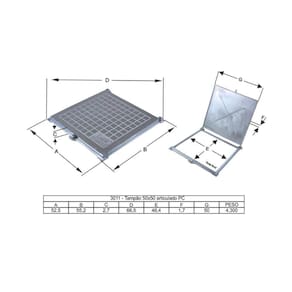 Modelo: Tampão Quadrado Articulado Porta Cadeado.