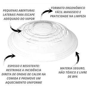 Tampa transparente para micro-ondas Tampa de micro-ondas transparente Você já percebeu a confusão que um micro-ondas sujo pode causar Resíduos e respingos de alimentos se acumulam, tornando a limpeza uma tarefa cansativa e demorada. Sem a proteção adequada, seus pratos favoritos podem perder sabor e aroma, além de haver o risco de danificar o aparelho. A tampa de micro-ondas transparente é a solução ideal para evitar esses problemas com ela, você protege seu micro-ondas da sujeira, preserva os sabores dos alimentos e ainda facilita o aquecimento. Seu design prático e compacto permite que você a armazene facilmente, até mesmo dentro do micro-ondas, mantendo sua cozinha sempre organizada. Benefícios - protege o micro-ondas de sujeira e respingos - preserva o sabor e a umidade dos alimentos - material de alta resistência e fácil armazenamento Especificações técnicas - material: plástico - dimensões: larg.: 26cm x alt.: 5cm - peso: aproximadamente 57g - cor: transparente Conteúdo da embalagem - 01 tampa de micro-ondas transparente Não deixe a sujeira atrapalhar sua rotina adquira agora a tampa de micro-ondas e mantenha sua cozinha sempre limpa e prática Informações importantes sobre a compra - com de fábrica Dúvidas frequentes: 2 - em quanto tempo meu pedido será enviado 3 - é seguro fazer esta compra Resposta: desde a fundação da nossa empresa, temos milhares de clientes satisfeitos em outras lojas online. Somos uma loja oficial neste marketplace. Além das garantias da plataforma, oferecemos de fábrica. 4 - os produtos têm Resposta: sim, oferecemos de 30 dias em todos os nossos produtos. Se houver qualquer problema, resolveremos da melhor forma possível. 5 - esta compra é segura Resposta: sim, garantimos total segurança na sua compra e sigilo dos seus dados. 6 - e se eu não gostar do produto, terei meu dinheiro de volta Resposta: de acordo com o cdc código de defesa do consumidor , todo cliente de compras online tem até 7 dias para devolver o produto em caso de arrependimento, sem custo na devolução. Você será reembolsado em 100% do valor da compra. Caso tenha alguma dúvida, envie-nos uma mensagem e responderemos o mais rápido possível. Marca: Não Informado