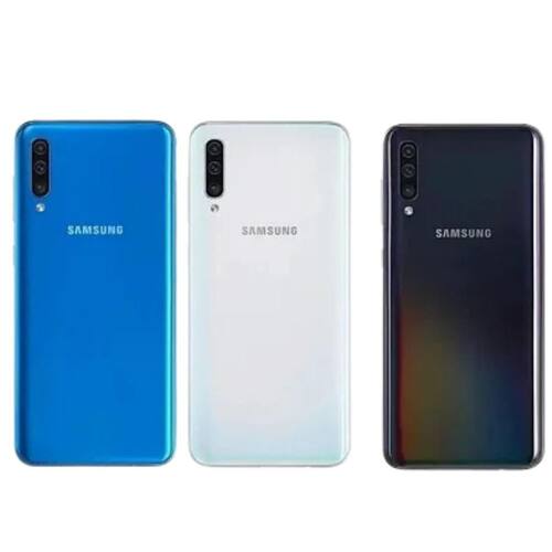 Superfície lisa, sem leitor de impressão digital pois ele está sob a tela no A50 .