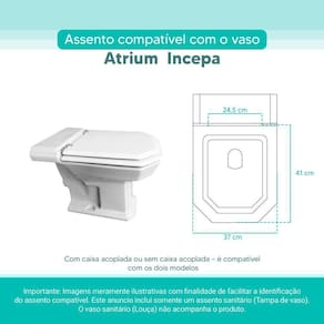 DIFERENCIAL * Possui calços que evitam o contato direto com a louça e que o assento deslize lateralmente. * Proporcionam maior estabilidade durante o uso. * Acabamento e encaixe perfeito no vaso sanitário. * Possui eixo entre as dobradiças, mantendo o assento sanitário firme na louça. * Sua ferragem metálica é super resistente e não oxida e nem enferruja.