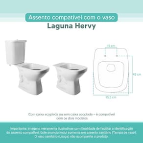 OBS.: O código 6LPF gravado na louça sanitária corresponde ao fluxo de água de uma descarga e não indica o modelo da mesma. RBN: Casa/Banho/Instalações e Acessórios de Banheiro/Vasos Sanitários e Peças/Assento de Vaso Sanitário | Conteúdo da Embalagem: 01 Assento Sanitário | Tipo: Assento Sanitário | Produto: Assento Sanitário | Site do Fabricante: | Marca do Assento Sanitário: Pontto Lavabo | : 6 meses contra defeitos de fabricação | Dica: Instalação: sem desmontar o produto, posicione sobre o vaso sanitário e encaixe os dois parafusos com as borrachas pretas dentro do furo do vaso. Aperte com a chave de fenda no sentido horário até ficar firme. | Para Vaso Sanitário do Modelo: Laguna | Para vaso Sanitário da Marca: Hervy | Cor: Branco | Tonalidade: Branco | Material do Assento Sanitário: MDF Laqueado | Instruções de Limpeza: Recomenda-se a limpeza com pano úmido e sabão neutro, não utilizar produtos abrasivos ou químicos | Almofadado?: Não | Peso do Produto: | Tipo de Fechamento: Fechamento Comum | Material da Fixação: Alumínio Anodizado | Precisa de baterias ou pilhas: Não | Regulamentações aplicáveis a produtos perigosos: Não aplicável | Código de certificação: Não aplicável | Ponto de Destaque01: Produzido em MDF Laqueado | Ponto de Destaque02: Ferragem em Alumínio Anodizado (não enferruja, não oxida) | Ponto de Destaque03: Possui 15cm de distância entre furos | Ponto de Destaque04: Produto vai completo, fácil instalação | Ponto de Destaque05: Pontto Lavabo | Termos de Pesquisa01: Assento Sanitário; Tampa de Vaso Sanitário; Laguna Branco Hervy; Laguna 6lpf; Hervy 6lpf | Quantidade de itens: 1 | Fonte de energia: Não aplicável | Dimensões da embalagem: Altura: 5cm x Largura: 40cm x Comprimento: 50cm | de caixas: 1