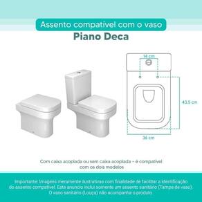 OBS.: O código 6LPF gravado na louça sanitária corresponde ao fluxo de água de uma descarga e não indica o modelo da mesma. RBN: Casa/Banho/Instalações e Acessórios de Banheiro/Vasos Sanitários e Peças/Assento de Vaso Sanitário | Conteúdo da Embalagem: 01 Assento Sanitário | Tipo: Assento Sanitário | Produto: Assento Sanitário | Site do Fabricante: www.ponttolavabo.com.br/ | Marca do Assento Sanitário: Pontto Lavabo | Garantia: 6 meses contra defeitos de fabricação | Dica: Instalação: sem desmontar o produto, posicione sobre o vaso sanitário e encaixe os dois parafusos com as borrachas pretas dentro do furo do vaso. Aperte com a chave de fenda no sentido horário até ficar firme. | Para Vaso Sanitário do Modelo: Piano | Para vaso Sanitário da Marca: Deca | Cor: Branco | Tonalidade: Branco | Material do Assento Sanitário: MDF Laqueado | Instruções de Limpeza: Recomenda-se a limpeza com pano úmido e sabão neutro, não utilizar produtos abrasivos ou químicos | Almofadado?: Não | Peso do Produto: 1.98 | Tipo de Fechamento: Fechamento Comum | Material da Fixação: Alumínio Anodizado | Precisa de baterias ou pilhas: Não | Regulamentações aplicáveis a produtos perigosos: Não se aplica | Código de certificação: Não se aplica Ean: 7899983693735