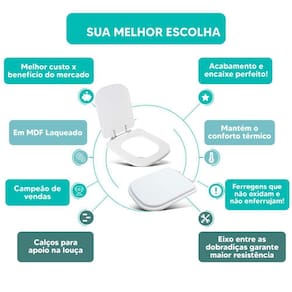MATERIAL * Fabricado em madeira MDF com Pintura Laqueada na cor Branco * Mantém o conforto térmico do assento sanitário.