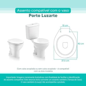 OBS.: O código 6LPF gravado na louça sanitária corresponde ao fluxo de água de uma descarga e não indica o modelo da mesma. RBN: Casa/Banho/Instalações e Acessórios de Banheiro/Vasos Sanitários e Peças/Assento de Vaso Sanitário | Conteúdo da Embalagem: 01 Assento Sanitário | Tipo: Assento Sanitário | Produto: Assento Sanitário | Site do Fabricante: | Marca do Assento Sanitário: Pontto Lavabo | : 6 meses contra defeitos de fabricação | Dica: Instalação: sem desmontar o produto, posicione sobre o vaso sanitário e encaixe os dois parafusos com as borrachas pretas dentro do furo do vaso. Aperte com a chave de fenda no sentido horário até ficar firme. | Para Vaso Sanitário do Modelo: Porto | Para vaso Sanitário da Marca: Luzarte | Cor: Branco | Tonalidade: Branco | Material do Assento Sanitário: MDF Laqueado | Instruções de Limpeza: Recomenda-se a limpeza com pano úmido e sabão neutro, não utilizar produtos abrasivos ou químicos | Almofadado?: Não | Peso do Produto: | Tipo de Fechamento: Fechamento Comum | Material da Fixação: Alumínio Anodizado | Precisa de baterias ou pilhas: Não | Regulamentações aplicáveis a produtos perigosos: Não aplicável | Código de certificação: Não aplicável | Ponto de Destaque01: Produzido em MDF Laqueado | Ponto de Destaque02: Ferragem em Alumínio Anodizado (não enferruja, não oxida) | Ponto de Destaque03: Possui 15cm de distância entre furos | Ponto de Destaque04: Produto vai completo, fácil instalação | Ponto de Destaque05: Pontto Lavabo | Termos de Pesquisa01: Assento Sanitário; Tampa de Vaso Sanitário; Porto Branco Luzarte; Porto 6lpf; Luzarte 6lpf | Quantidade de itens: 1 | Fonte de energia: Não aplicável | Dimensões da embalagem: Altura: 5cm x Largura: 40cm x Comprimento: 50cm | de caixas: 1