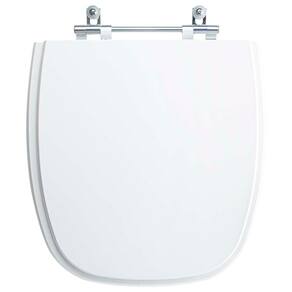 DIFERENCIAL * Possui calços que evitam o contato direto com a louça e que o assento deslize lateralmente. * Proporcionam maior estabilidade durante o uso. * Acabamento e encaixe perfeito no vaso sanitário. * Possui eixo entre as dobradiças, mantendo o assento sanitário firme na louça. * Sua ferragem metálica é super resistente e não oxida e nem enferruja.