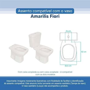 Tampa Vaso Sanitário Poliester Acrilico Amarilis Branco Para Bacia Fiori A Tampa Vaso Sanitário Poliester Acrilico Amarilis Branco para bacia Fiori é o que faltava para deixar seu banheiro ainda mais bonito. EXELENTE DURABILIDADE * É totalmente impermeável * Pode ser lavado com água à vontade