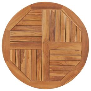 Esta mesa de jantar redonda é feita de madeira maciça de teca, mostrando sua beleza natural e como é funcional. Com um diâmetro de 80 cm e espessura de 2,5 cm, adiciona charme rústico a qualquer área de jantar, seja em uma cozinha aconchegante ou café movimentado, ótimo para família e amigos se reunirem.