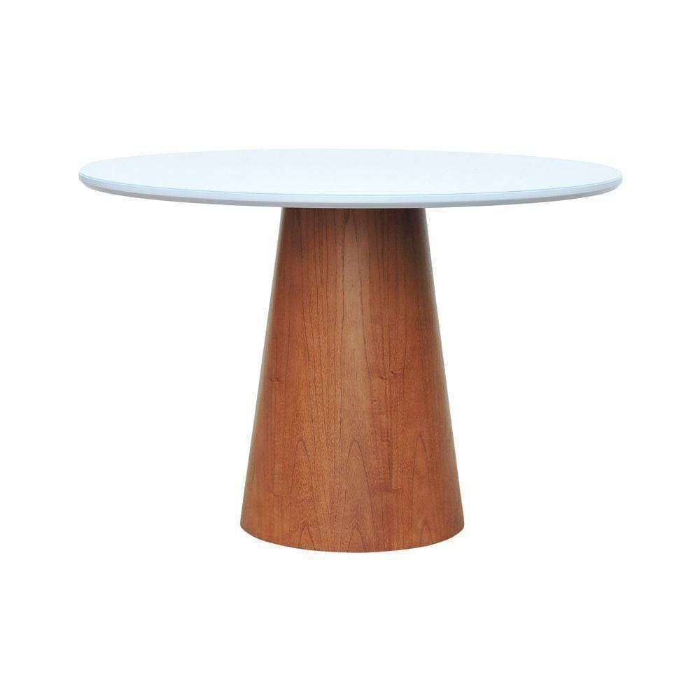 Mesa De Jantar Tampo Em Vidro Base Cone Laminado Cinamomo Natural Tampo ø150 Branco-vidro Branco