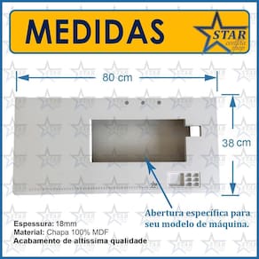 Medidas Tampo: 80x38cm; Abertura da máquina: conforme modelo da máquina descrita nesse anúncio.