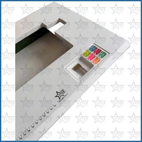 Características do produto: - abertura para armazenamento de bobinas e agulhas - suporte de linhas para dois cones simultâneos - tampo com fita métrica gravada, proporcionando medidas rápidas e precisas para facilitar seu dia a dia.