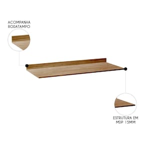 Características do Produto Material da Estrutura: MDP 15mm. Peso Suportado: 20 Kg distribuídos. Acabamento: Melamina BP. Escala de Brilho: Fosco. Diferenciais: - Design moderno. - Acompanha rodatampo. - Fácil limpeza. Sistema de Montagem: Parafusos. Manual de Montagem: Não. Complexidade da Montagem: Baixa. Volumes: 1 Volume. Conteúdo da Embalagem: 1 Tampo. Garantia do Fabricante: 90 dias contra defeito de fabricação. Montagem: Recomendamos que seja feita por um profissional. Recomendação de Limpeza: Utilize pano úmido.