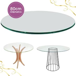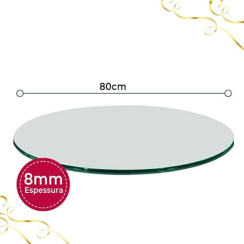 Espessura do vidro: 8mm Diâmetro: 80cm Material: vidro temperado Cor: incolor Formato : redondo Necessita montagem : não