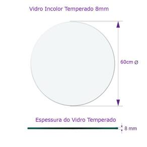 Material: Tampo de Vidro Temperado Incolor. Dimensões: 60cm de diâmetro. Espessura do vidro: 8mm. Descrição:Tampo para mesa de vidro temperado Incolor de 8mm de espessura. Ideal para ser usada em pequenas e médias bases de mesa de jantar, bases de mesas de centro, entre outras mesas e funcionalidades. O Vidro temperado é resistente e seguro, além de ser fácil de limpar.br> Marca: Lubrano Ean: 7908059360645