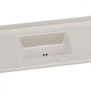 Produto em marmore sintetico com espessuras reforcadas, com cobertura granitada de gel coat com brilho e resistencia incomparaveis. Superficies mais lisas sem porosidade proporcionando maior higiene e facil limpeza. Pias com protetor de parede e caneletas altas, evitando o derramamento acidental de agua.