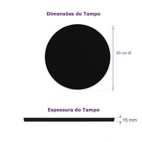 Material: Tampo Redondo de MDF BP Preto TX. Dimensões: 50cm de diâmetro. Espessura do mdf: 15mm. Descrição: Tampo redondo de mdf 15mm para mesa. Ideal para ser usada em base de mesa, bistrô, apoio. Marca: Lubrano Ean: 7908059360676