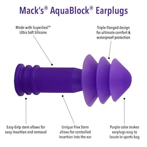 Mack's Os tampões de ouvido Aqua Block são projetados com silicone de alta qualidade, ultra macio e super flexível para extremo conforto e proteção contra água, bem como uma haste fácil de segurar para fácil inserção e remoção. Os protetores de ouvido AquaBlock são perfeitos para manter a água fora de seus ouvidos durante o surfe, tomar banho, caiaque, rafting, mergulho e banho. Os tampões de ouvido Mack's AquaBlock recomendados por médicos ajudam a prevenir infecções de ouvido do nadador (otite externa) e ouvido do surfista (exostose). Estojo de transporte durável de alta qualidade incluído para conveniência em movimento. Mantém seus tampões de ouvido limpos e os protege contra poeira e desgaste geral. Vá ao chuveiro, ondas ou piscina com confiança com os tampões de ouvido Mack's AquaBlock, os melhores protetores de ouvido à prova d'água.