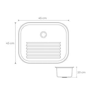 - Material: Aço Inoxidável 201 de alta qualidade. - Dimensões: 450 mm x 450 mm x 200 mm. - Espessura: 3 mm. - Acabamento: Galvanização elétrica para maior durabilidade e resistência à corrosão. - Características: Design moderno com tecnologia antirruído para uma lavanderia mais silenciosa.