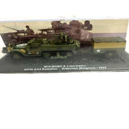 Novo. Sem uso. Miniatura de Caminhão M16 MGMC & 1-ton Trailer, 447th AAA AW Battalion - Ardennes (Belgium) 1945