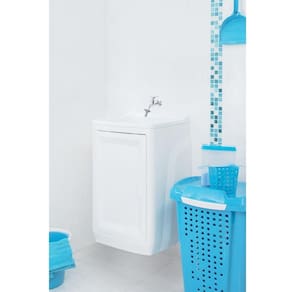 Tanque com Gabinete Lava Roupa Todo Plástico AstraGabinete plástico com tanque feito em polipropileno com aditivo UV, compacto, design moderno e na cor branca.Prático: Organização e optimização de espaço.Resistente: Não mofa, não empena e não atrai cupim.Fácil Limpeza: Pano úmido e macio, pode ser lavado. Opções de altura para prateleira interna, Acompanha sifão e válvula, Porta reversível (pode abrir para direita ou esquerda), Capacidade do tanque: 15 litros.Cor: BrancaReferência do Fabricante: GTQ0Acompanha Sifão, Todos os Parafusos para Instalação, válvula de saída, prateleira do gabinete.Medidas: 51 x 43 x 78 cm